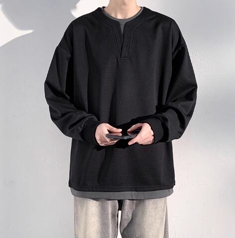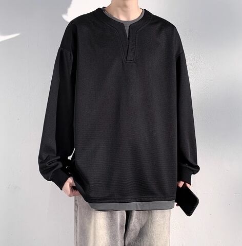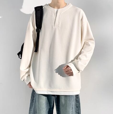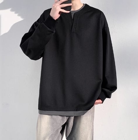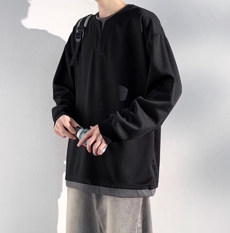 【重ね着風でこなれ感UP】ヘンリーネック×ワッフル生地!春秋に映える万能スウェット