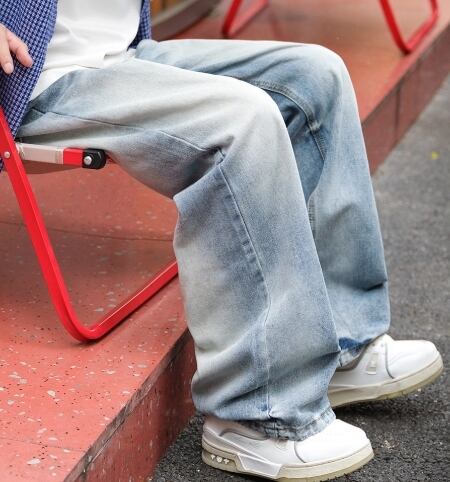 【ゆるっと穿ける】グラデーション加工ワイドジーンズ