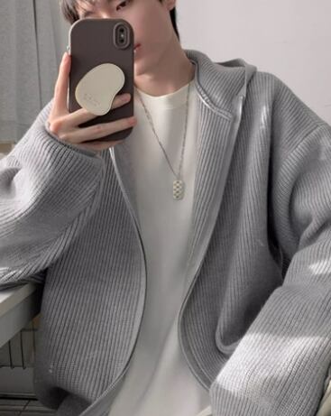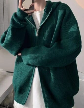 【秋冬新作】ダブルジップ×フード付きのニットアウター
