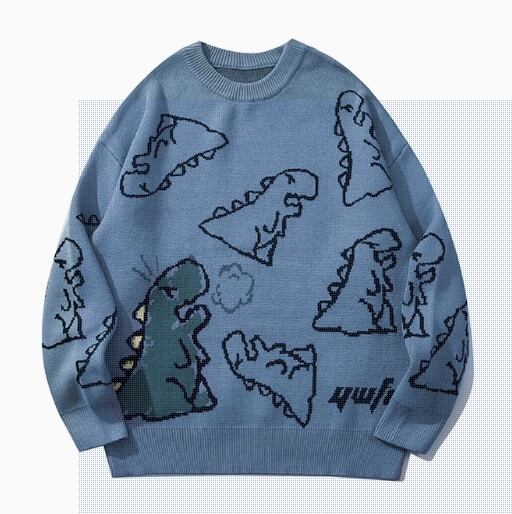 ストリート系 カートン総柄 クルーネック ニット メンズ ヒップホップ インスタ映え ルーズフィット 着回し抜群 ペアルック ニットセーター
