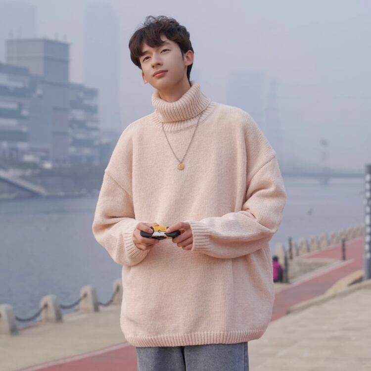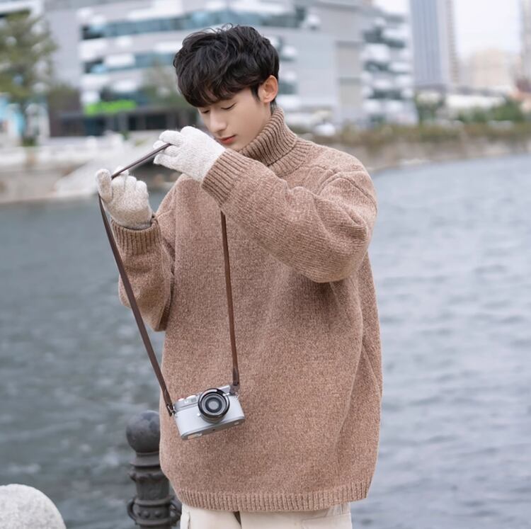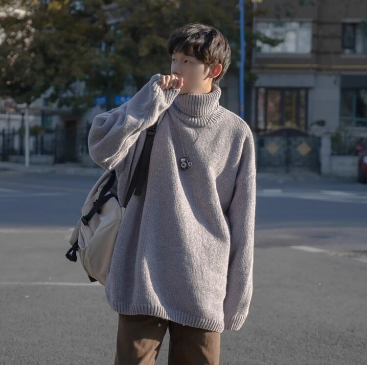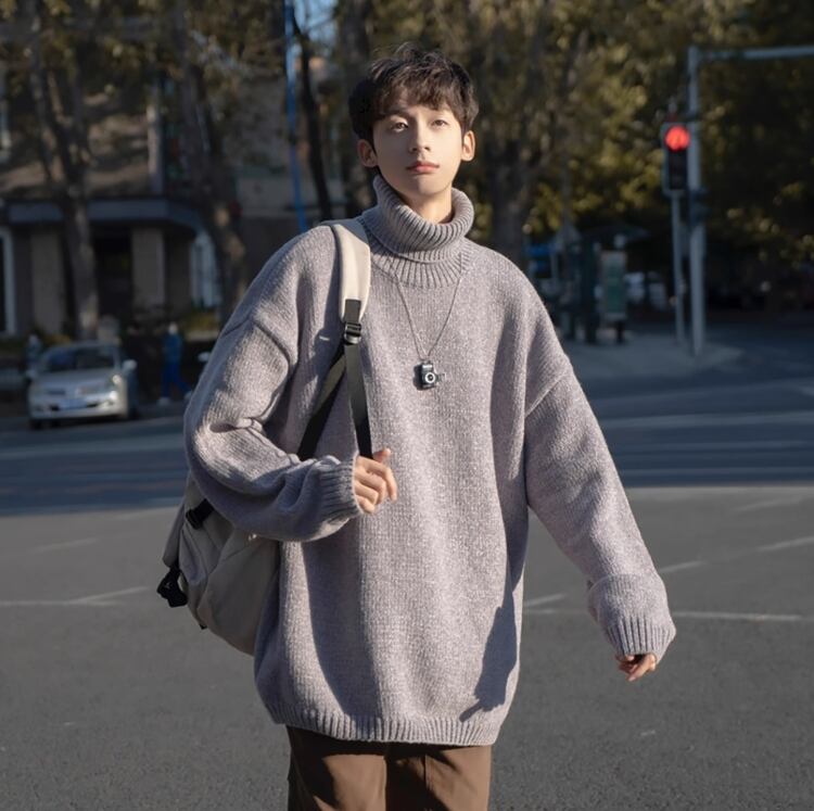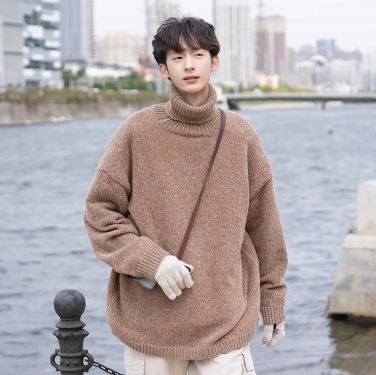 メンズ シェニール ハイネックセーター メンズ 秋冬 レトロ ゆるめデザイン ゆったり メンズ ニットトップス