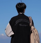 メンズ アメリカンスタイル 切り替えデザイン スタジャン 秋用 ゆったり レトロ メンズ 野球襟 ジャケット