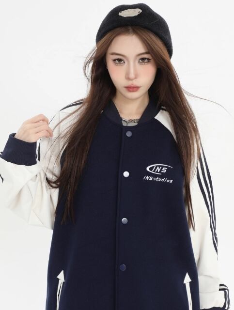 スタジャン 配色切り替え ラグランスリーブ ゆったり 中綿入りジャケット メンズ カップル