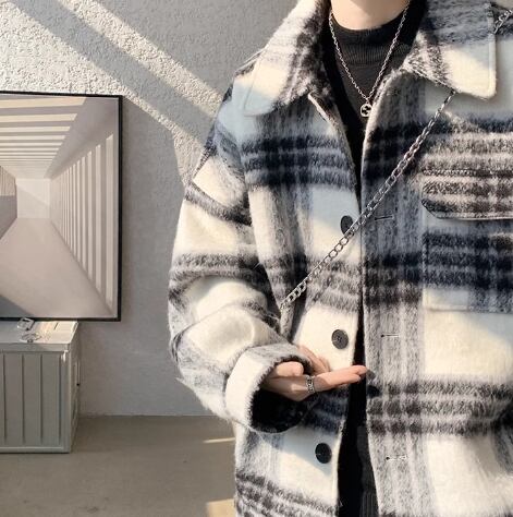 高級感のあるチェック柄 長袖シャツ メンズ 春秋用 トレンド ビッグサイズ 純綿素材 シャツアウター