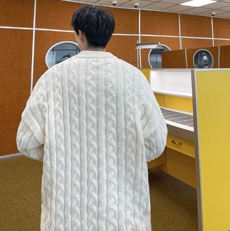 クルーネックセーター メンズ ツイスト編み ビッグサイズ カップルコーデ対応 ニット プルオーバー